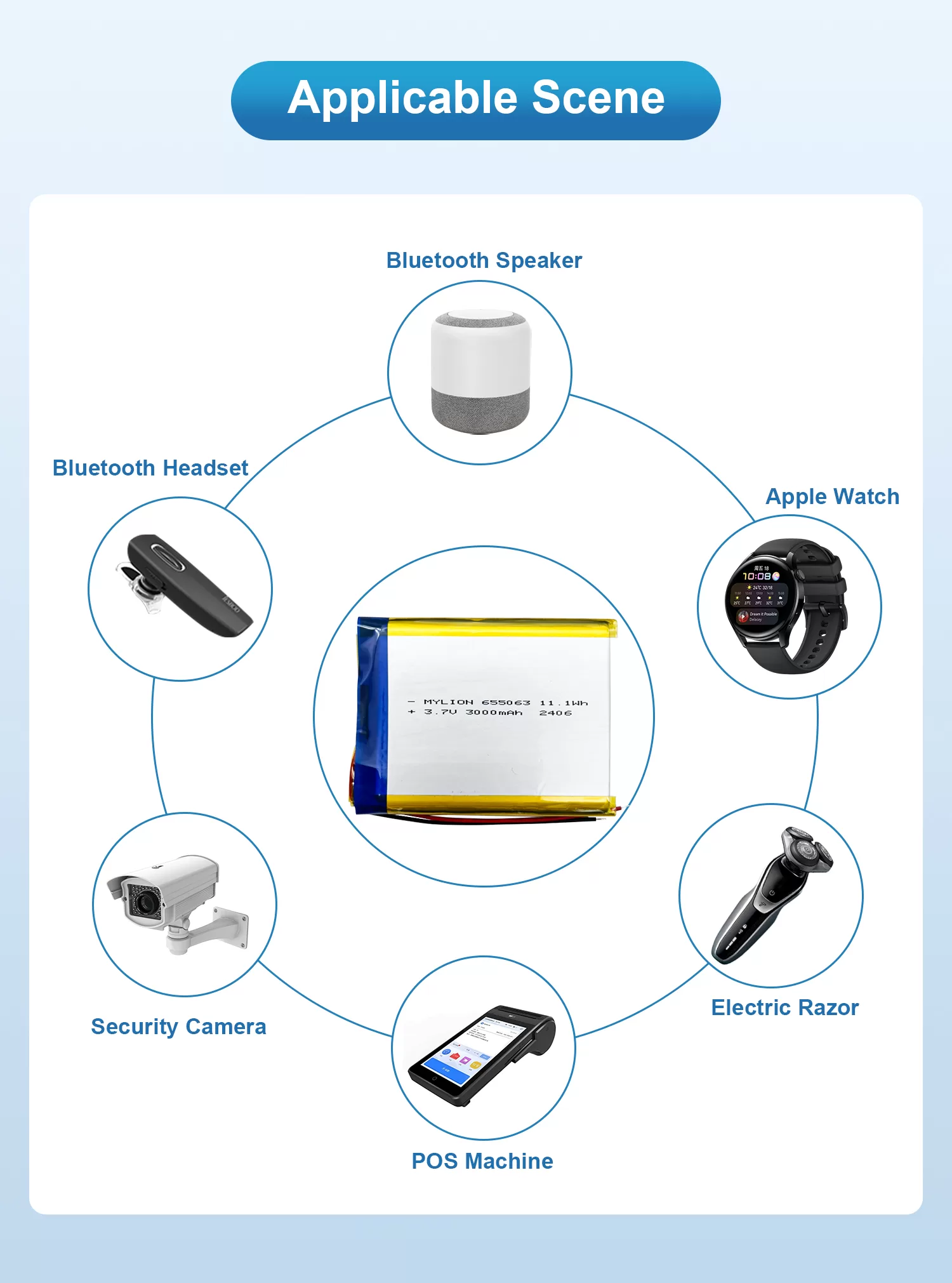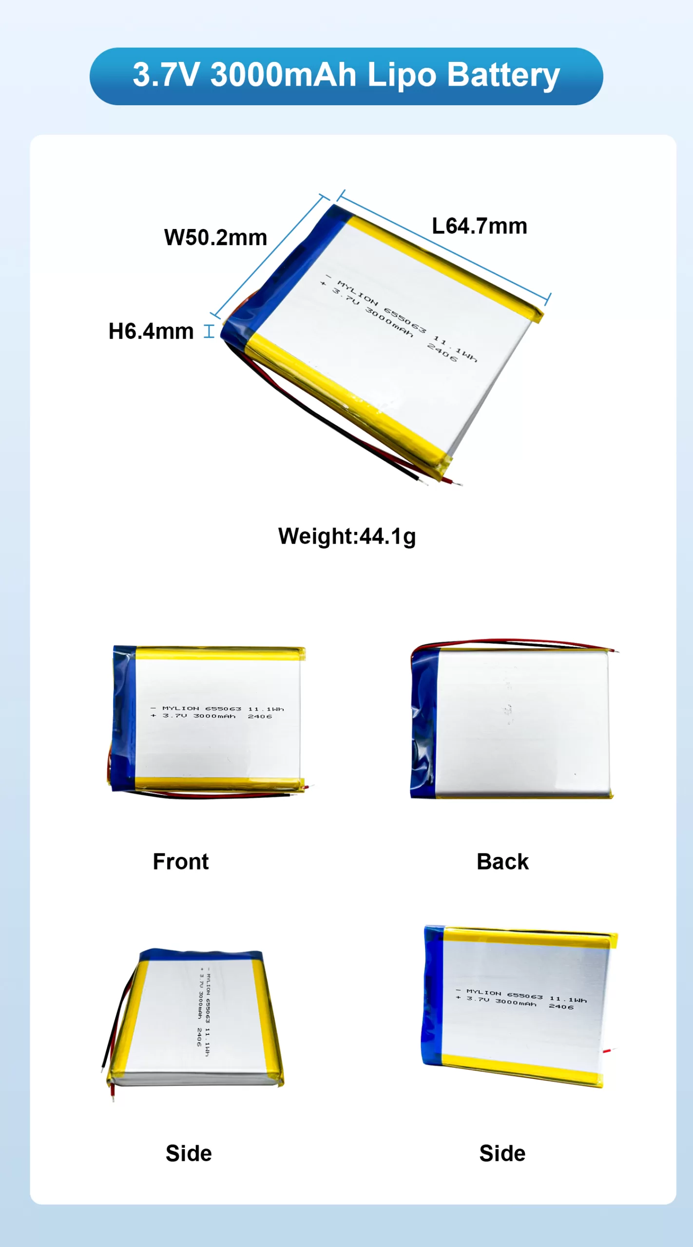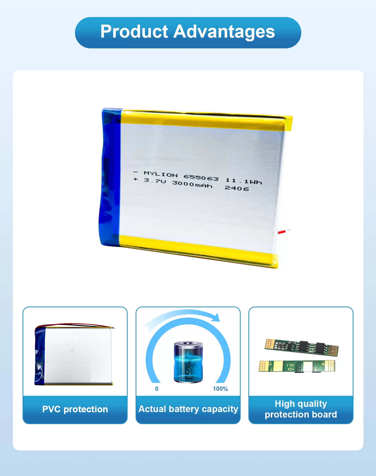 Product name | Lithium polymer battery 3.7V 3000mAh 655063 |
