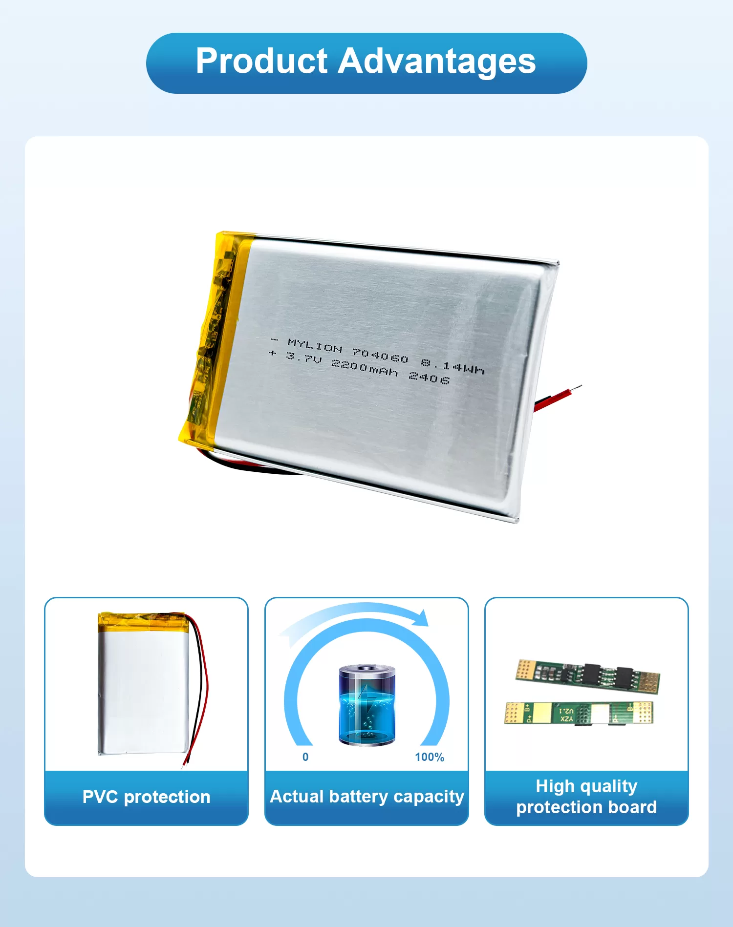 Product name | Lithium polymer battery 3.7V 2200mAh 704060 |