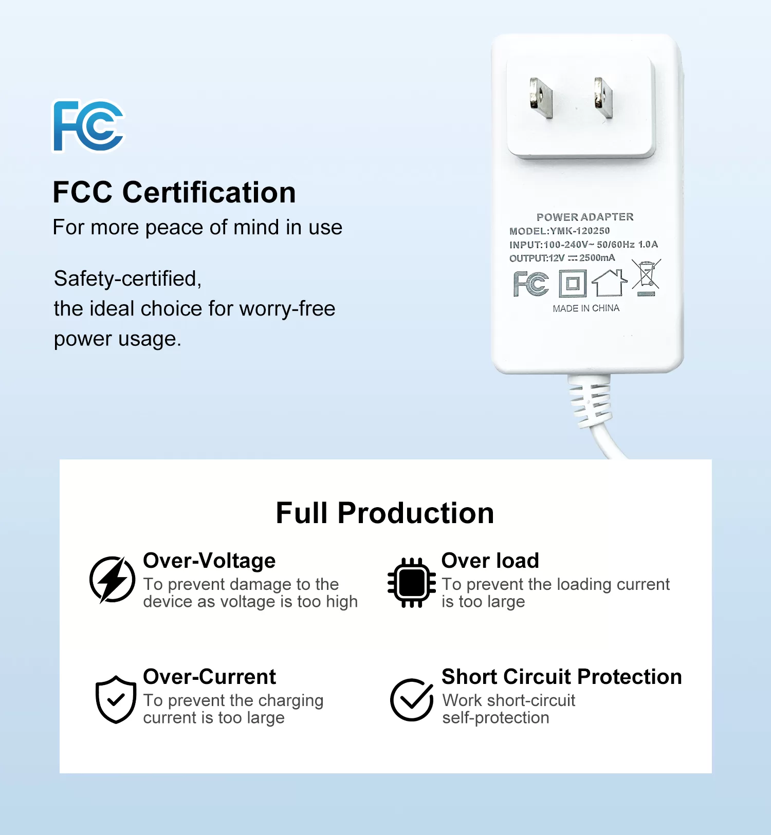 Universal 12V2.5A Power Supply Adapter with Global Plug Standards Ideal for CCTV LED Strips Routers and More